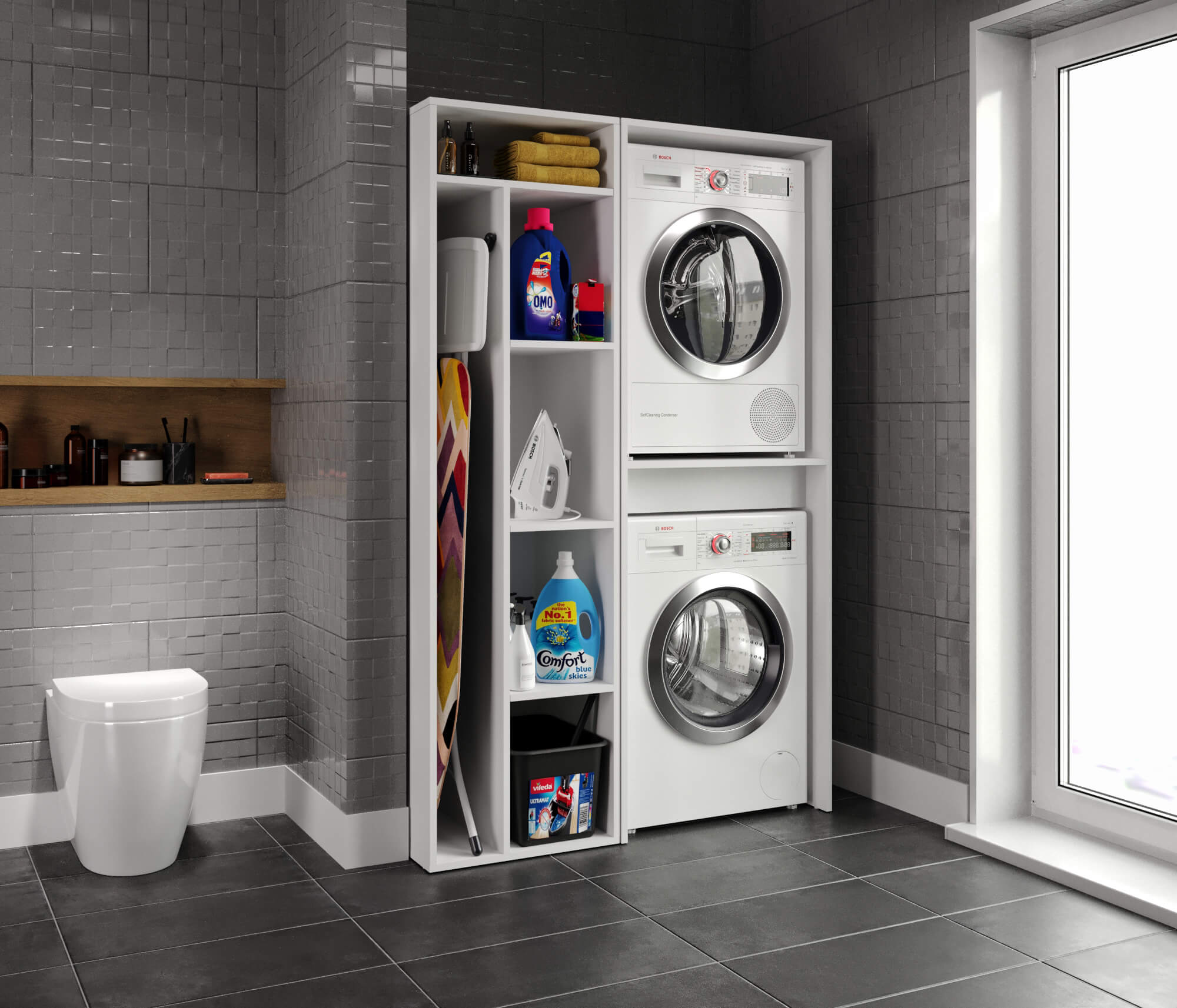 Kurutma makinesi dolabı, daha düzenli, daha kullanışlı ve daha estetik bir çamaşır alanı yaratmanızı sağlar.